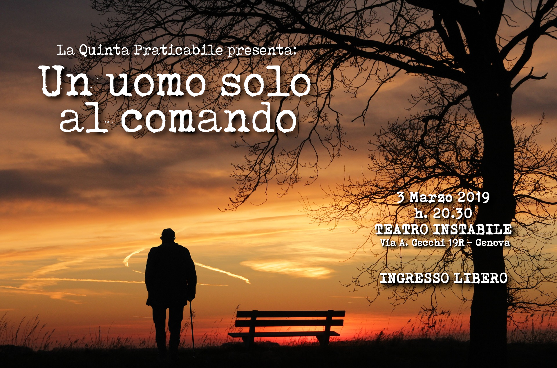 vorrei invitarvi a teatro il giorno 3 marzo 2019 alle 20.30 presso il Teatro Instabile di via Cecchi (Genova), a vedere “Un uomo solo al comando“, scritto da Renato Biasizzo e adattato anche da me e dal mio buon editor Paolo Silingardi.